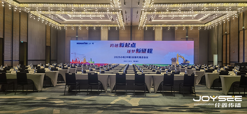 1月13日,小松(中国)投资有限公司(以下简称:小松中国)2025年全国代理店大会在厦门万豪酒店及会议中心盛大召开。大会以“跨越新起点 逐梦新征程”为主题,来自全国各地的小松中国代理店、小松集团总公司、小松中国集团关联企业等单位的160余名代表齐聚一堂,总结分享了2024年业务开展情况及经验,共商2025年工作及未来发展大计。本次大会由佳鑫传播提供全程落地执行服务、活动策划、物料制作、设备搭建及各相关板块的协调、管理等工作。